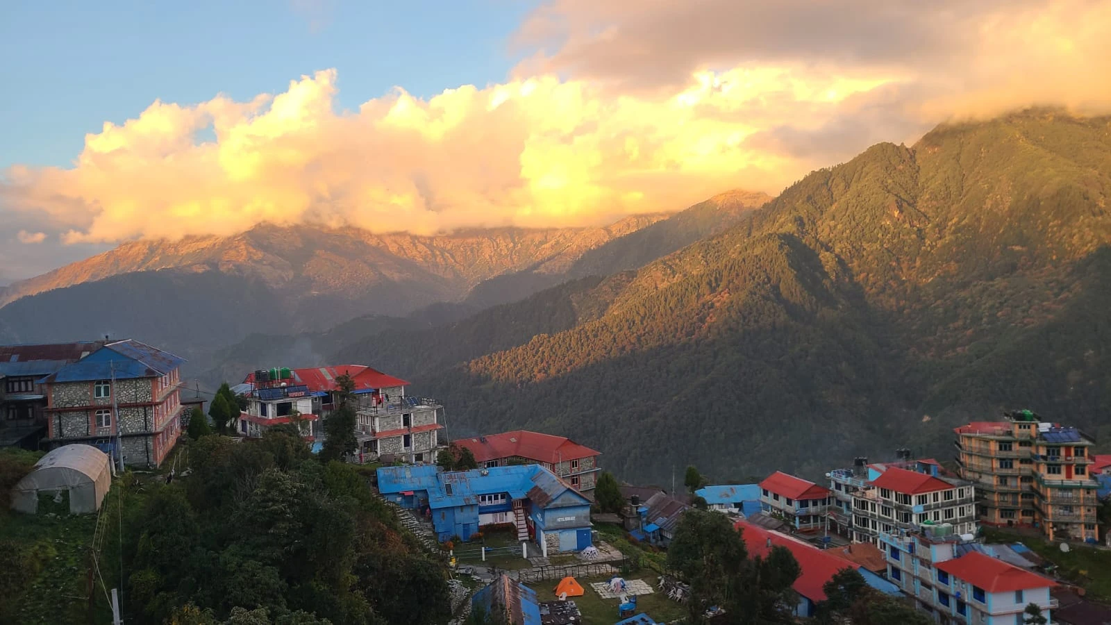 - Vibrant Sunrise view from Poon Hill (3,120m) over Annapurana and Dhaulagiri.