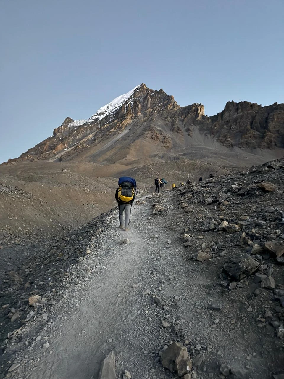 While on the way to Tilicho Lake, you will navigate rocky, steep, and glacial terrain. The route may be covered with snow as well. After Tilicho Lake, you will head to Thorong La pass. The lush greenery slowly goes out of the picture, and now all you enjoy is true Himalayan bareness.