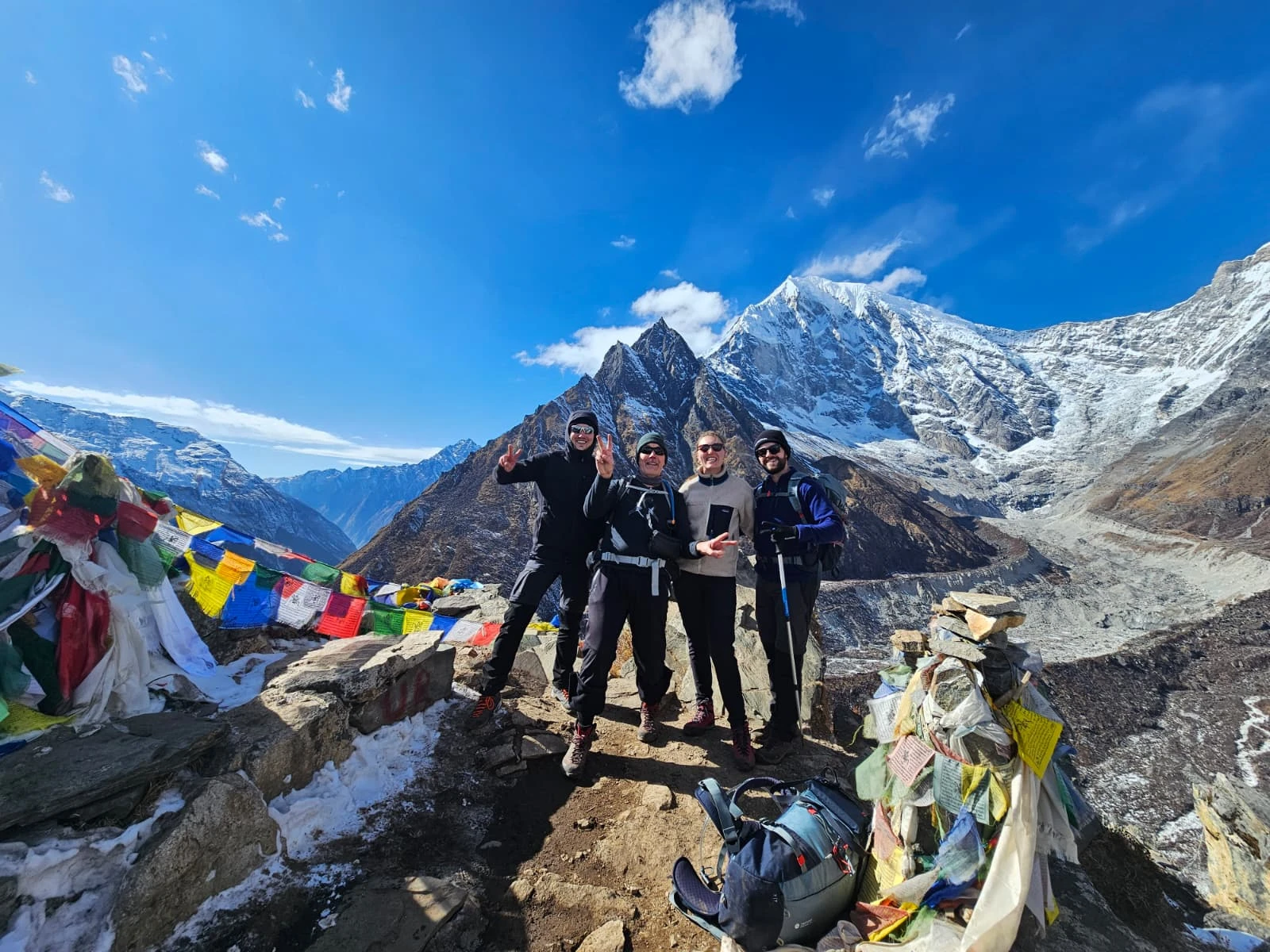 • Personal equipment for trekking: Sleeping bag (-15), down jacket, trekking shoes, personal towel, torch light, gloves, trekking stick, warm clothes, sun glass, sunscreen, socks, some medicine for headache, fever, handiplast, bandage, pain killer, stomach ache, diarrhea, dimox etc. (You can hire or buy sleeping bag easily in Kathmandu)