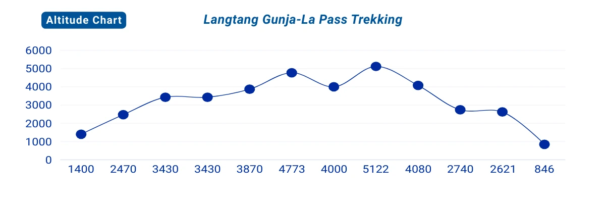 The Gunja-La pass is one of the most challenging passes in Nepal. This wedge in the Himalaya is situated at an altitude of 5160m in Langtang region. Our Langtang Gunja-La Pass Trekking takes you over this pass as you make your way south from Langtang village.