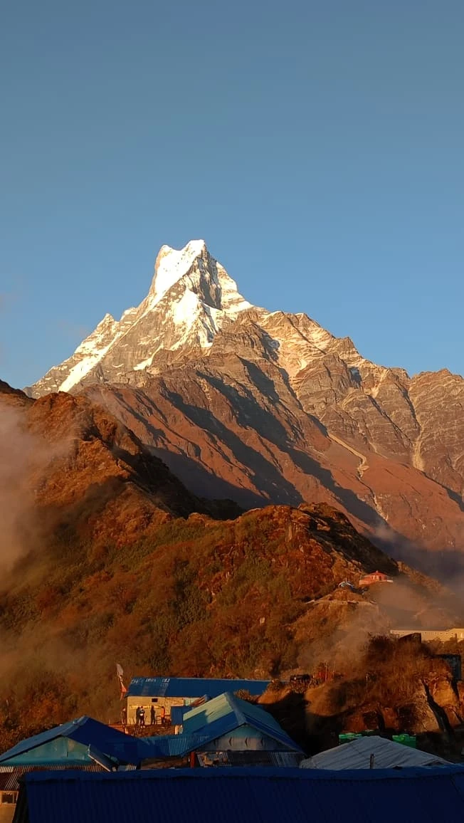 Also, we will ascend through the woods and eye-catching views of Machapuchare and Annapurna will greet us as we walk to Himal. Then, we will hike to Machhapuchhre base camp which is magnificently set on the northern side of the gigantic Mt. Machhapuchhre.